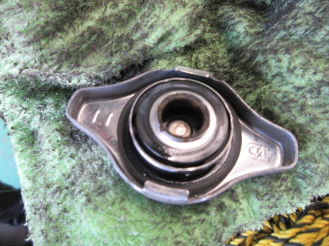 吹いた後は有るのですが?ラジエータは大丈夫・・・何とラジエータキャップの損傷でした。