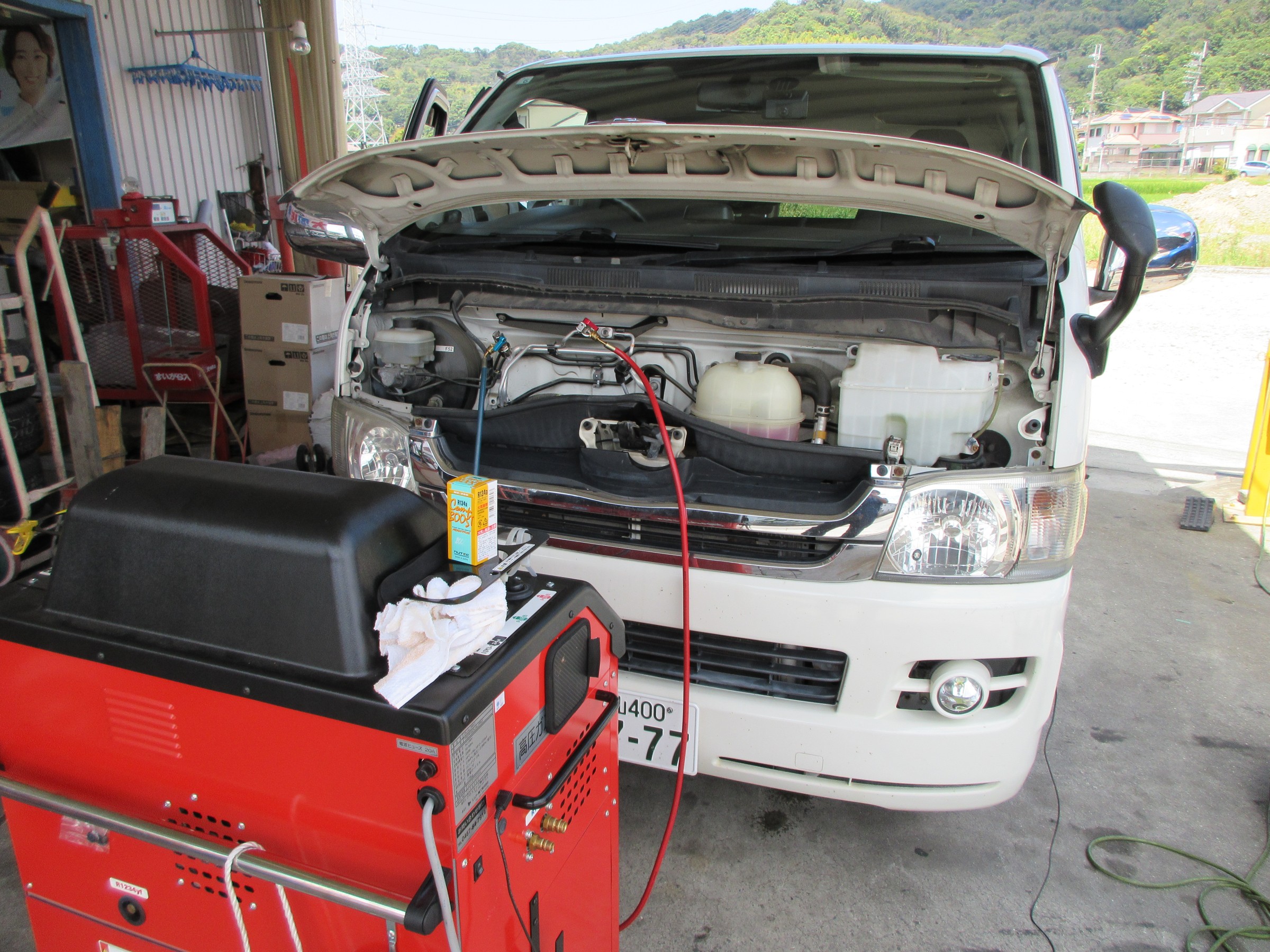 遠方からハイエース様 エアコンガスクリーニングを施工に来てくれました。
