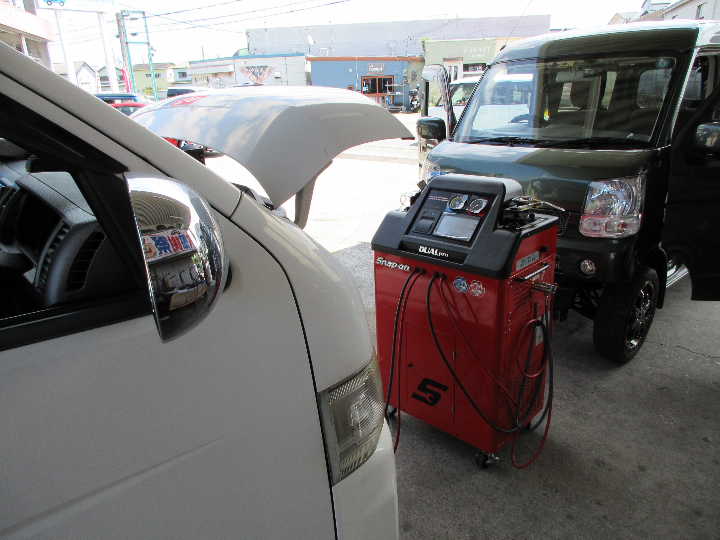 事前点検でも案外冷えていますが、距離を乗られているのでエアコンガスクリーニングしときたいそうです。