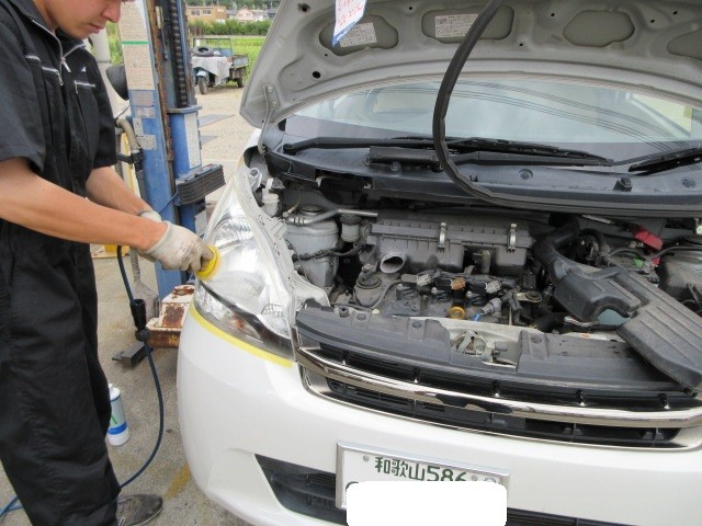 へっとライト磨きしています。