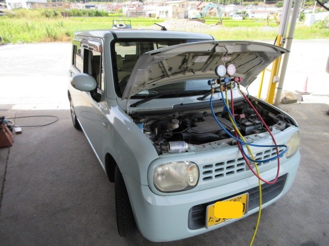 色々問題有りそうですが緊急なのでエアコンガス1本注入致します。