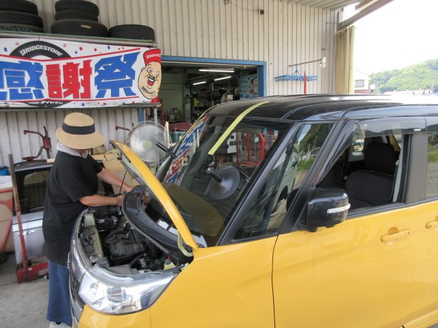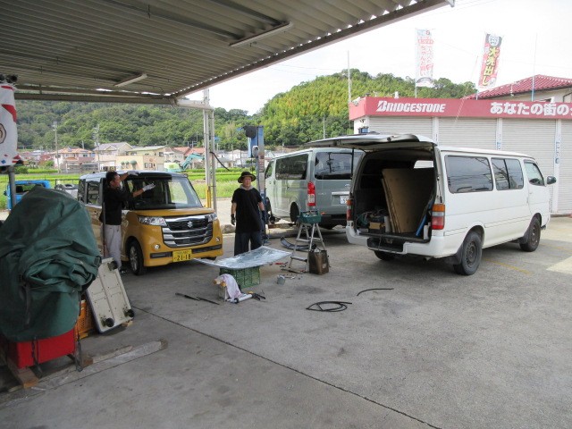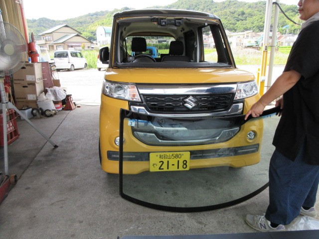 昼からは、スペーシアのフロントガラス交換頼んでいたので施工して貰います。