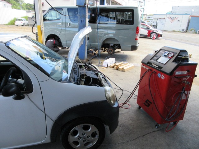 車検から帰ってきたツインちゃん空間が狭いわりにエアコンの効きが甘いのでエアコンガスクリーニング施工します。