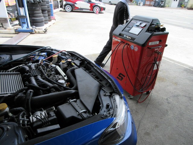 エアコンマシーンで診断ごエアコンガスクリーニング致します。