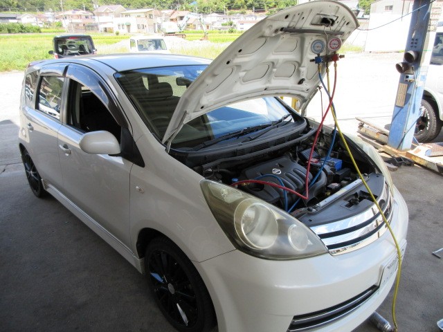 E11ノートのエアコン効かない病・・・診てみると、コンプレッサーが動いていませんね・・・
