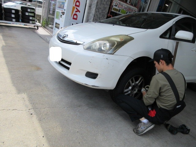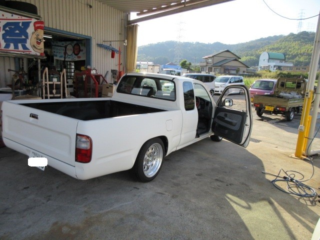ハイラックストラックのお客様から「ハンドル取られる」との事で引き取りに行ってきました。