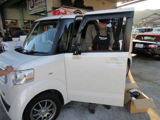N-BOXのミラー交換です。チョット手こずっていますね・・・