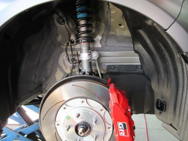 GRMNヤリスのサスペンションは元からビルシュタイン製の車高調です。メッチャ硬い様な・・・