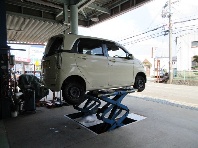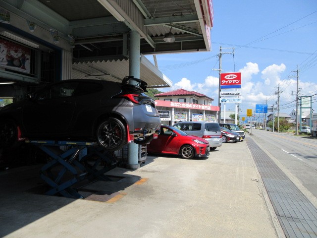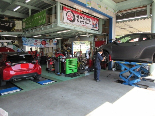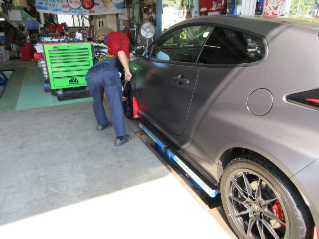 隣のリフトには赤いGRヤリスがオイル交換やってます。