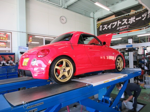 綺麗な赤のL880Kコペンのオイル交換です。美しですね