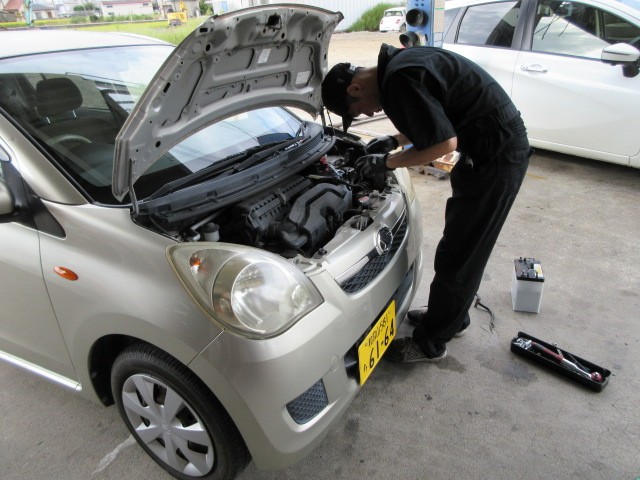 ライトの付けっぱなしでバッテリー上がりで出張・・・ミラのバッテリー交換です。