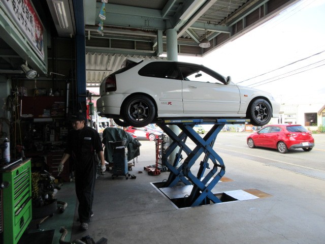EK9シビックタイプRマフラー交換です。