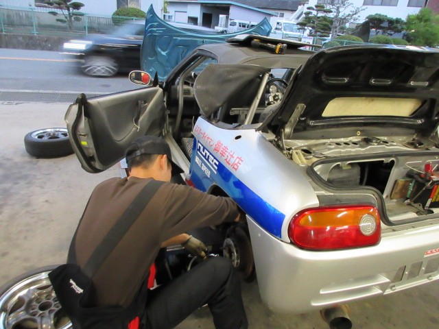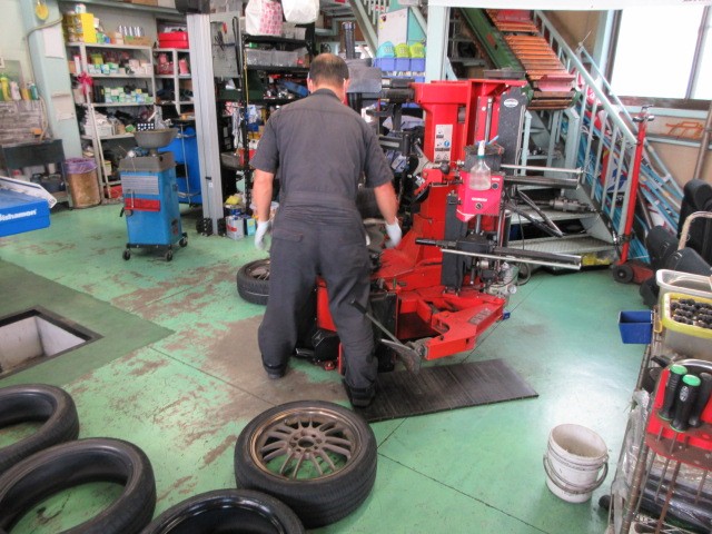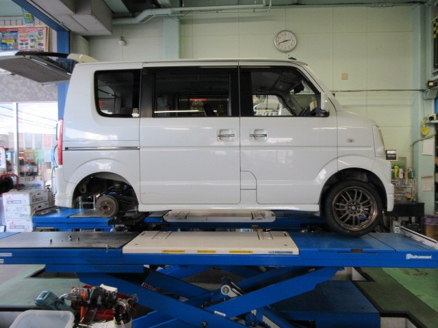 エブリイワゴンのタイヤ交換です。RE30だったかな?レイズの鍛造ですね。カッコいいですね。