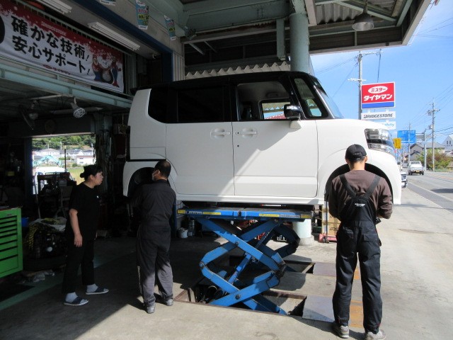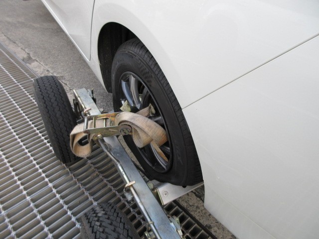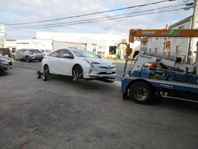 ロードサービスがご来店 プリウスが引っ張られて来ました。なんだろう?