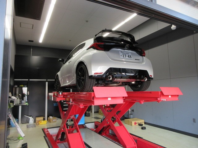 GRガレージ来ています。社用車のGRNMヤリスのオイル交換だそうです。