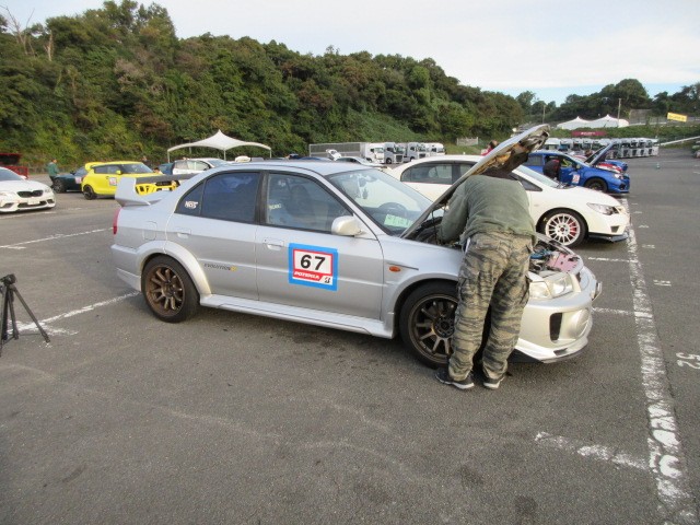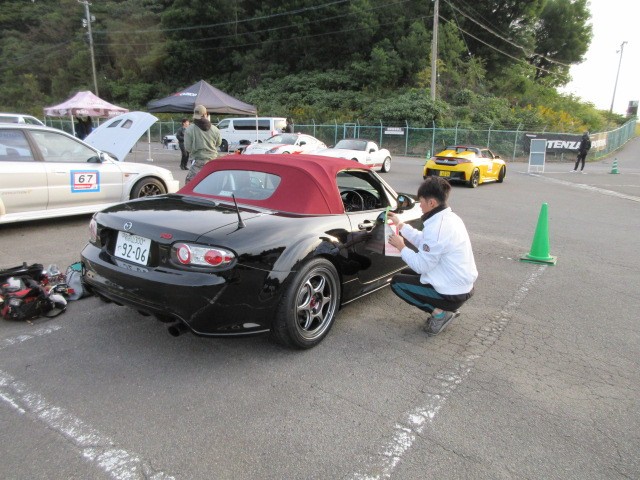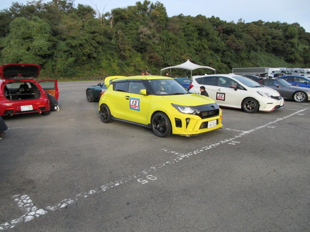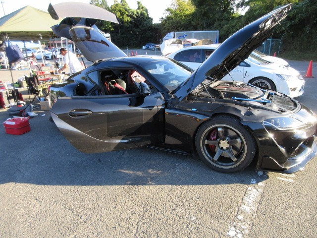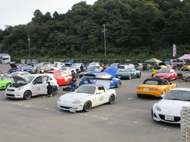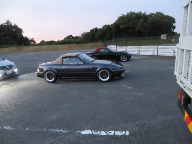 会場入り前です。奥のロードスター直くんが一番乗りですた。(初参加)