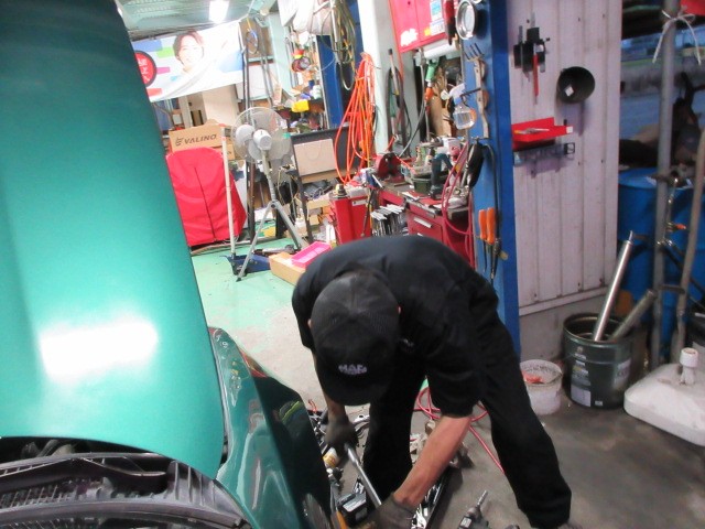 スプリンタートレノAE111もう旧車ですね・・・セルモーターの調子が悪いそうで持ち込みでの交換作業となります。