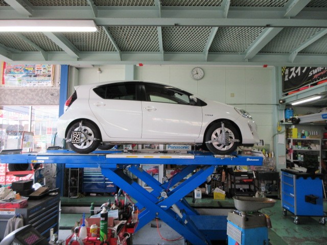 業者様からの依頼で、アクアのアライメント調整致します。