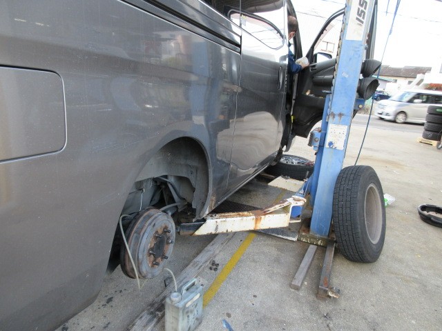 初めてご来店のキャラバンさんの車検整備です。38万km超えてるので消耗部品は交換致します