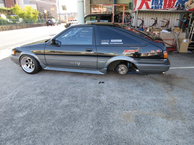 AE86改さんは明日の走行会の為に新品のシバタイヤ装着です。