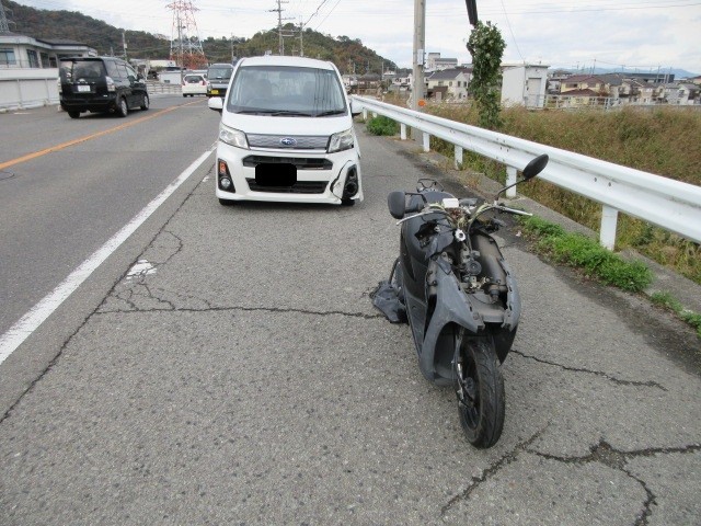 近所で事故発生 呼ばれたのでスクーターで様子を見に来ています。