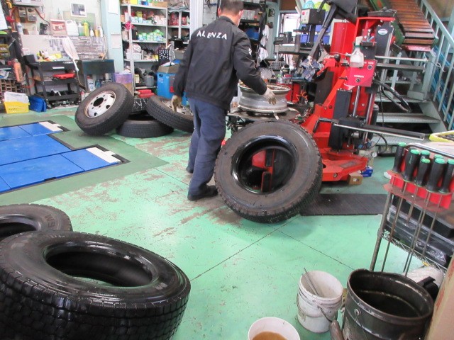 キャリートラックのタイヤ交換です。