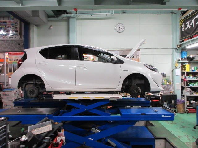 アクアにもスタッドレスタイヤ装着です。