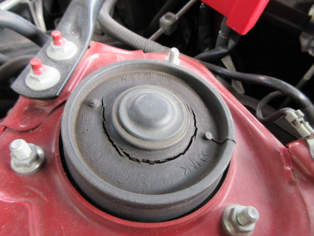 純正のアッパーマウントは、こんな感じに傷んでますね要交換です。