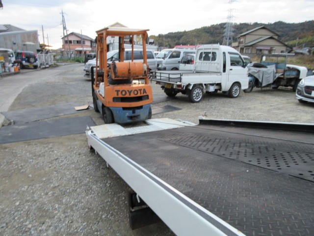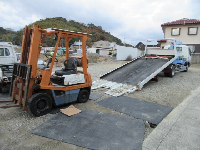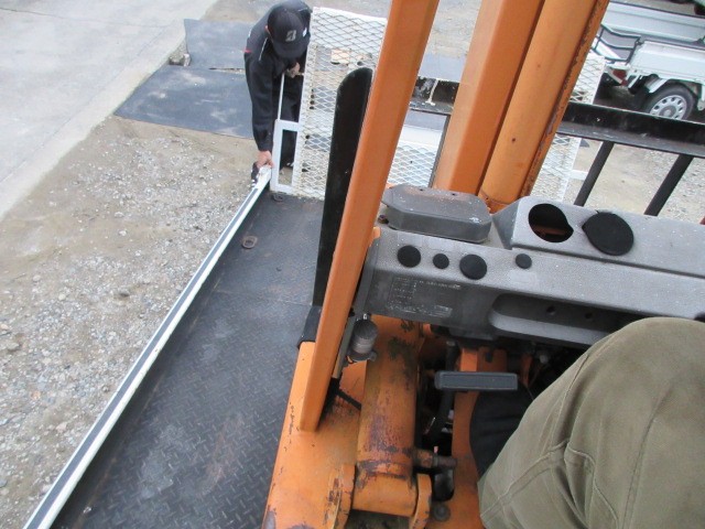修理を無事完了したフォークリフト明日納車するので積載車に積み込んでおきます。