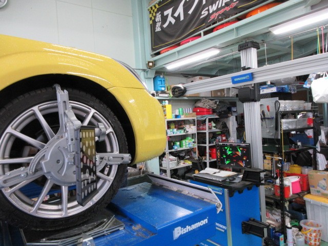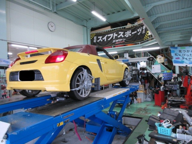 永らく掛かっていたMR-Sの車検整備やっとアライメント調整で完成です。