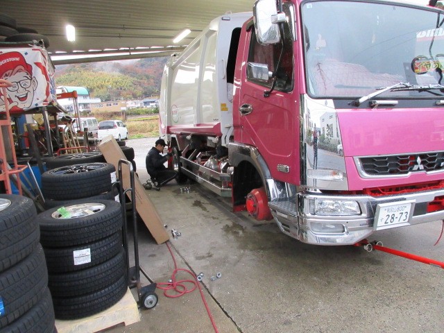 トラックのアルミホイールのタイヤ交換です。キズを付けない様に頑張ります。