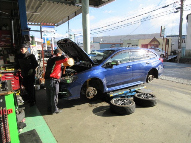 レボーグの車検整備です。初めて車検なので痛みはないです。