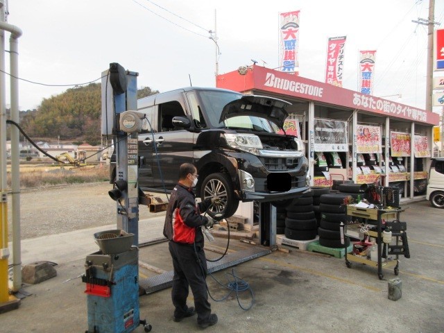 タントカスタムの車検整備です。少し距離が伸びてるので、慎重に診て行きます。