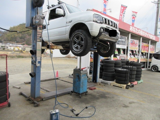 キャリーダンプのタイヤ交換です。いつもありがとうございます。