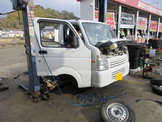 あ~やっと普通の業務が~キャリートラックのタイヤ交換です。