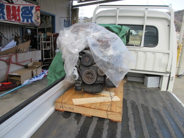 去年の走行会でエンジンブローした。ランサーエボリューションⅤのエンジンが届いたのでお持ち帰りして貰います。