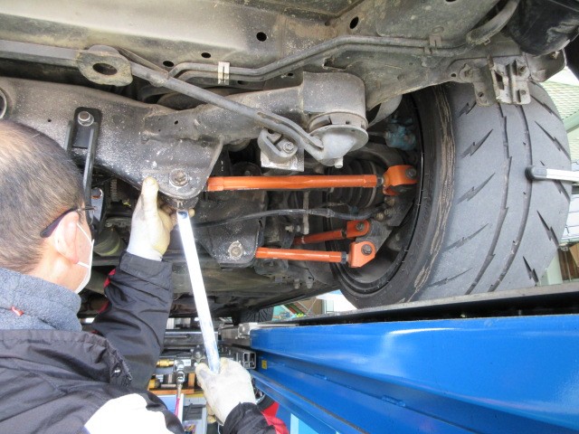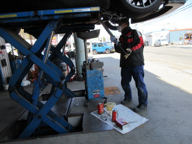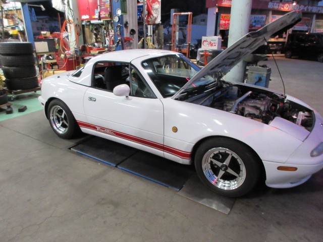 NA6Cロードスターさんは、エンジンオイル交換です。下廻りの点検もしときます。