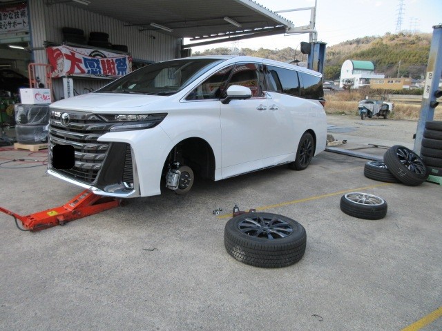 新車のベルファイヤーにスタッドレスタイヤ装着です。新車なので緊張します。