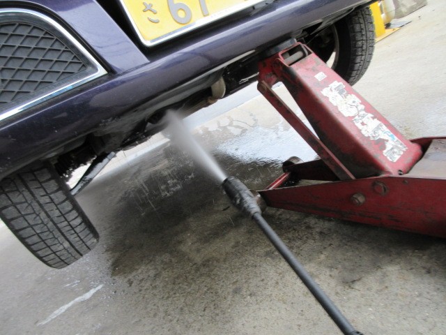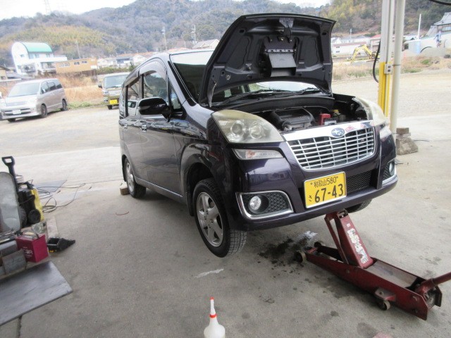 このステラは当店の貸し用車です。少しオイル漏れがしているので、場所の特定の為お掃除しときます。