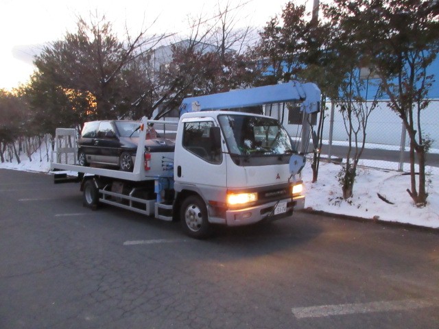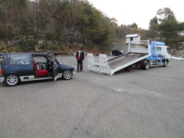 周りは雪景色 ボロイ積載車にはボロイ アルトワークスちゃんが乗っかっています。