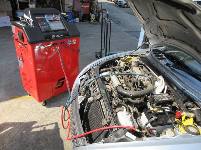 当店では、中古車の通常販売の場合エアコンマシーンでエアコンのガスクリーニング&点検致します