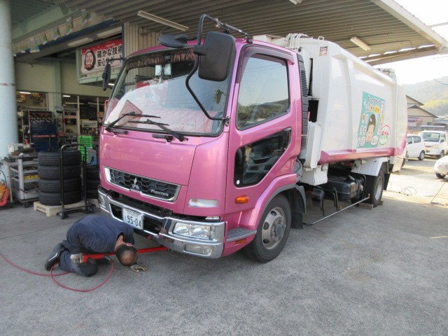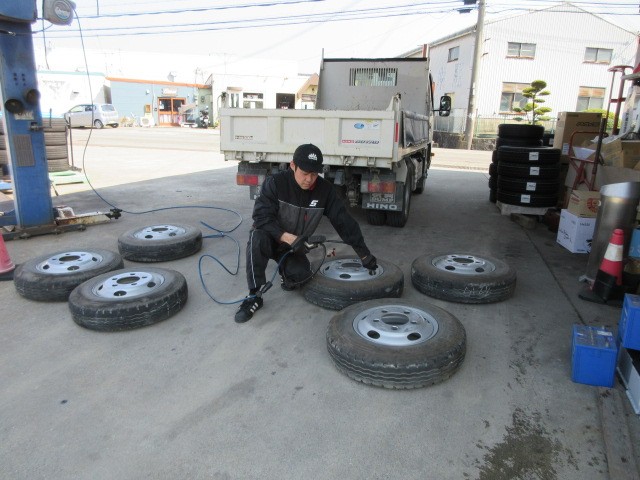 トラックのタイヤ交換です。ありがとうございます。