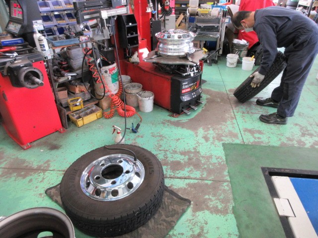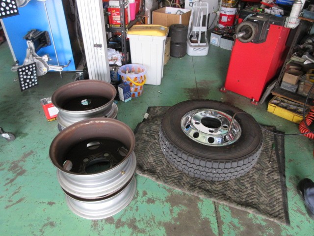 先日から点検をさせて貰ったトラックにアルミホイール装着致します。