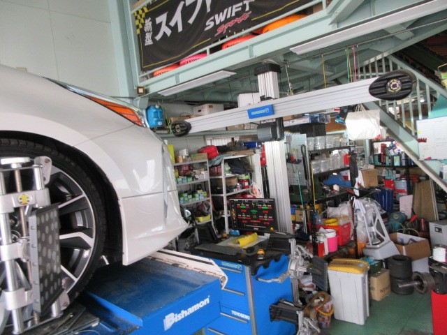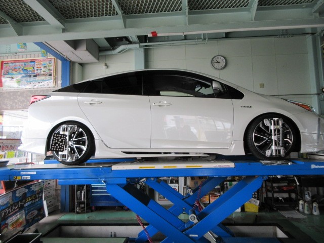 こちらは、車高の低いプリウスさんのアライメント調整致します。