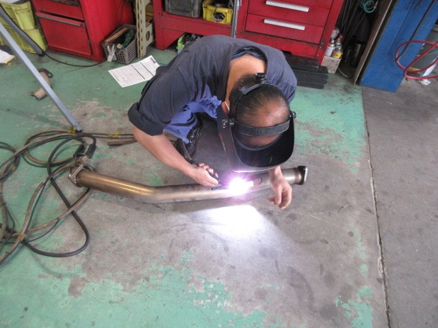 ZN6のフロントパイプの補修しています。