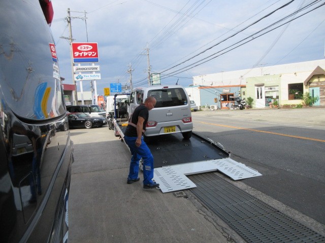 突然 ワゴンRさんが搬送されてきました?パンクだそうです。最近は、スペアータイヤ無いんですよね