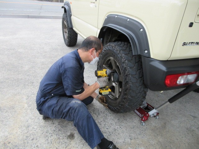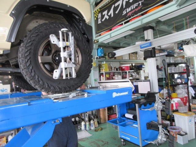 先日リフトアップをしたJB64ジムニーのアライメント調整致します。