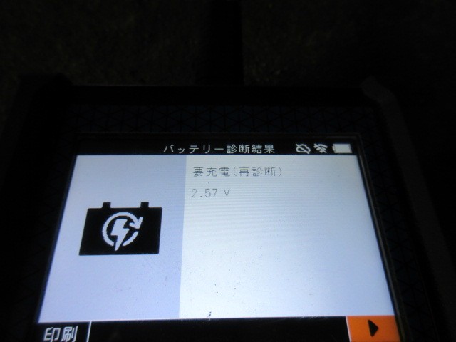 2.57ボルトでは、セルモーター回りませんね・・・バッテリー交換となりました。