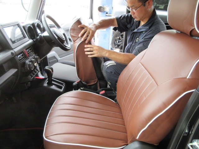 ジムニーにシートカバー取り付けです。