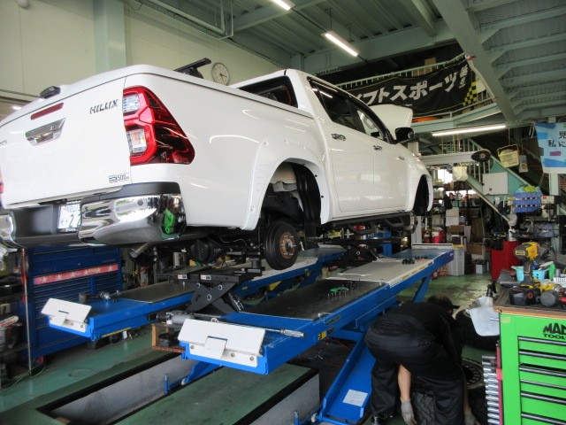綺麗なハイラックストラックの車検整備です。